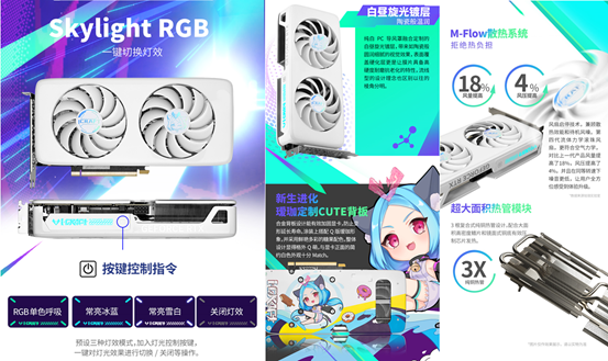 外觀上,純白PC導(dǎo)風(fēng)罩融合定制白晝旋光鍍層,陶瓷般的細(xì)膩質(zhì)感搭配表面硬化層,耐磨抗老化,流線型設(shè)計(jì)取代了上代的棱角分明,更顯精致。合金背板有效加固顯卡,防止變形延長(zhǎng)壽命,Q 版璦珈形象搭配鮮艷糖果配色,萌趣十足,與正面簡(jiǎn)約白外觀完美契合。散熱方面,聚風(fēng)環(huán)形扇葉與優(yōu)化散熱模塊確保穩(wěn)定散熱,第四代流體力學(xué)滾珠風(fēng)扇更符合空氣力學(xué),相較上一代風(fēng)量提高 18%、風(fēng)壓提高 4%,同等轉(zhuǎn)速下噪音更低。更貼心的是,550W 以上電源即可支持運(yùn)行,進(jìn)一步降低入門門檻。