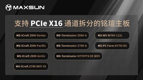 MAXSUN Intel Arc Pro B60 Dual 48G Turbo采用PCIe5.0 X8+PCIe5.0 X8接口設(shè)計,只需主板支持PCIe X16 通道拆分為 X8+X8,即可在消費級平臺上實現(xiàn)高效運行,大幅降低部署大模型的整機(jī)成本。銘瑄多款主板支持PCIe X16通道拆分,助力顯卡雙芯性能滿血釋放,真正實現(xiàn)性價比之選,讓更多用戶能夠擁抱本地大模型。