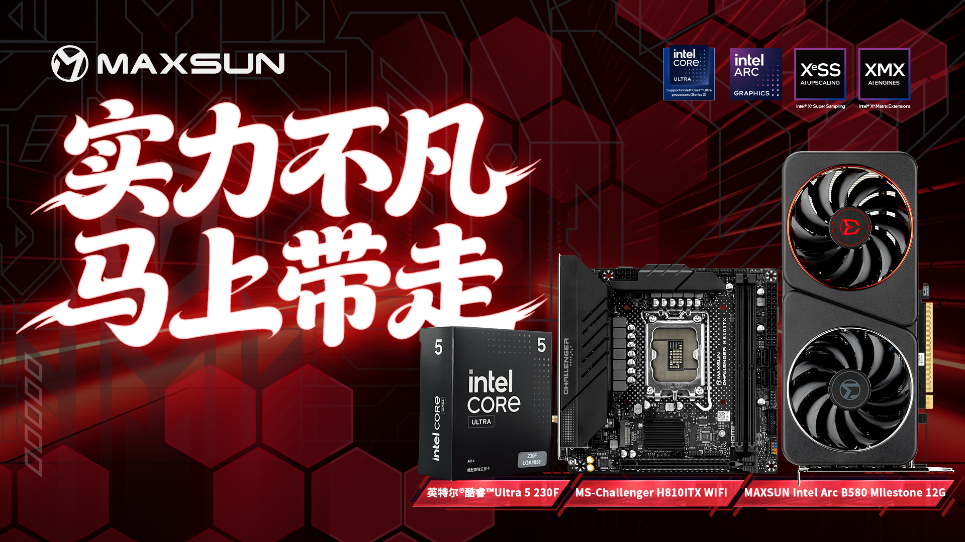 新年宅家,無需在 “便攜” 和 “性能” 之間妥協。這套英特爾酷睿 Ultra 5 230F 處理器 + 銘瑄 Challenger H810ITX WIFI 主板 + MAXSUN Intel Arc B580 Milestone 12G 顯卡打造的高性能緊湊型主機,以小巧身形承載強悍性能,既能輕松打包帶回家與好友開黑狂歡,又能滿足日常辦公、4K 影音、專業創作等多元需求,堪稱新年宅家的高性能實用好物,讓每一段閑暇時光都充滿暢快體驗。